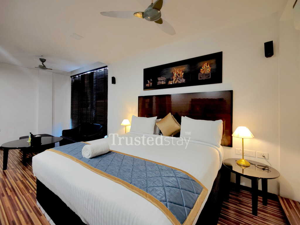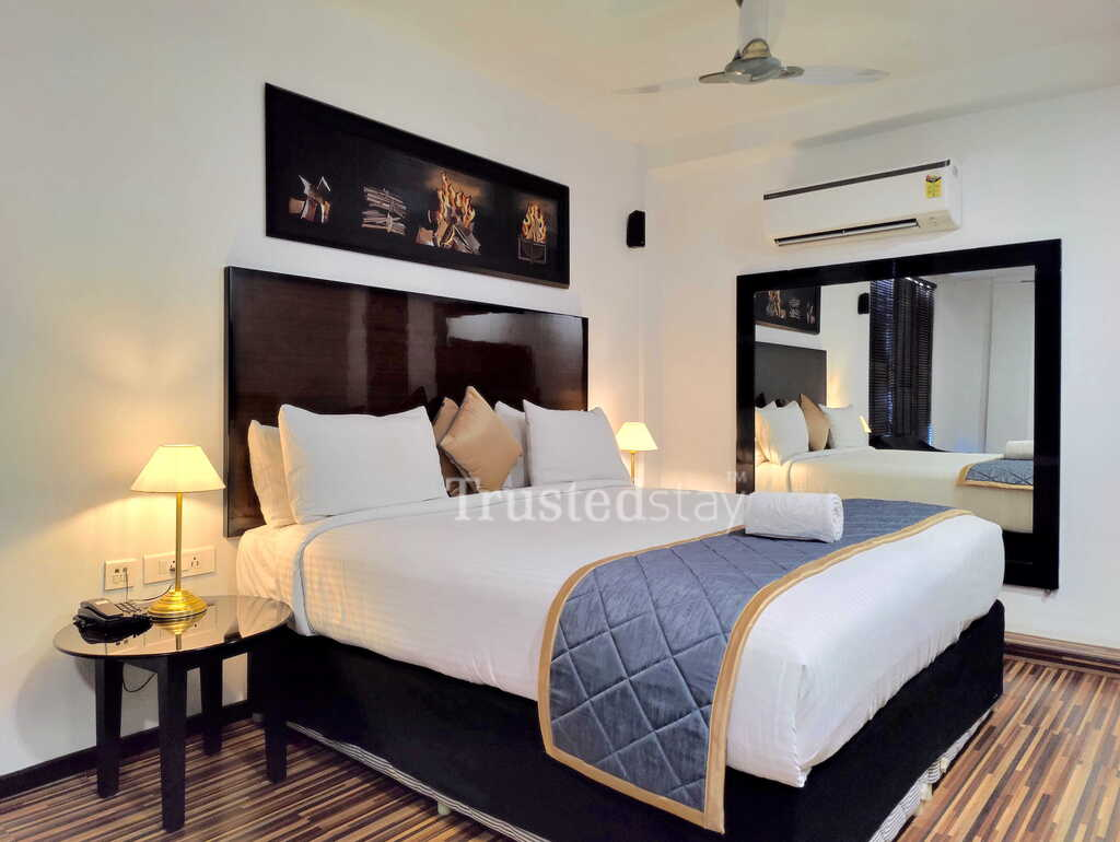 The property features 12 well-furnished rooms, with the ground floor housing parking, reception, and an in-house restaurant with a kitchen. The first and second floors each feature 6 rooms, comprising 4 Rooms with twin beds and 2 Rooms with king-size beds, all equipped with electric kettles, Split AC, LCD TVs, and attached bathrooms. TrustedStay OMRMI1 is ideal for corporate travellers, families, and short- or long-term stays in Chennai.
