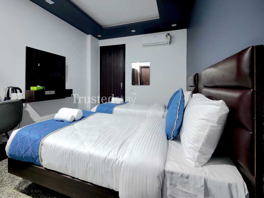 TrustedStay GGNAX1 Guest House is a self-contained accommodation situated in Sector 52, Gurugram, conveniently positioned opposite 51 Mall. The property enjoys good connectivity, being roughly 19 km from Indira Gandhi International Airport, about 650 metres from Medsovis, and nearly 10 km from DLF CyberHub.