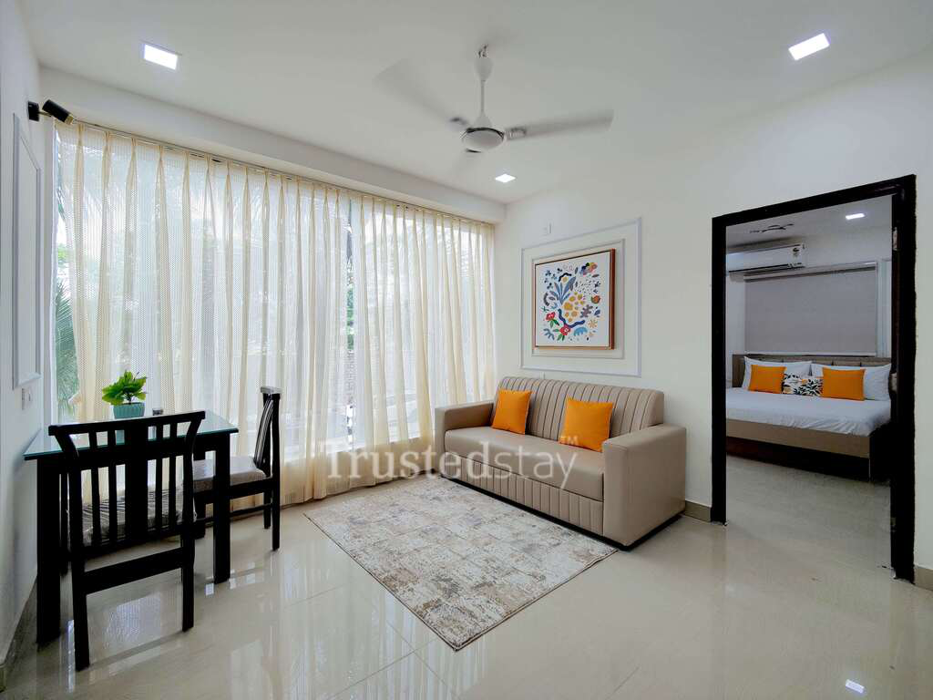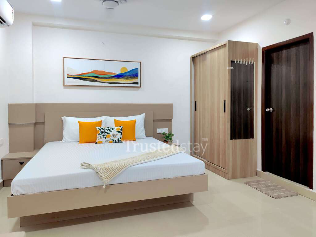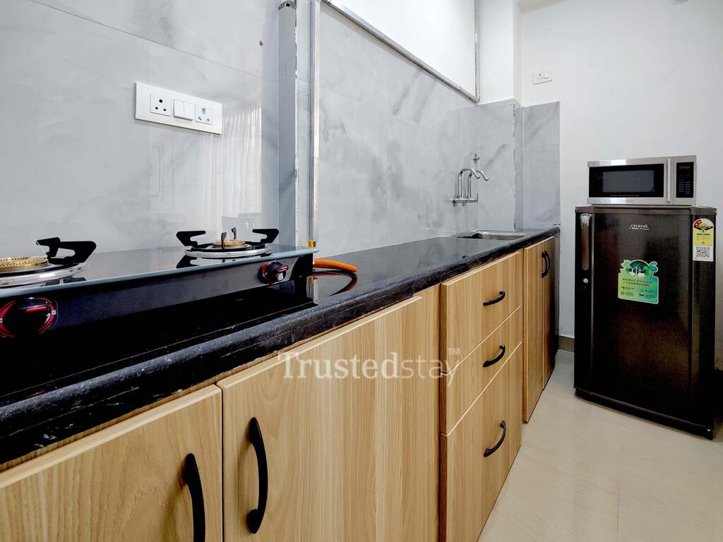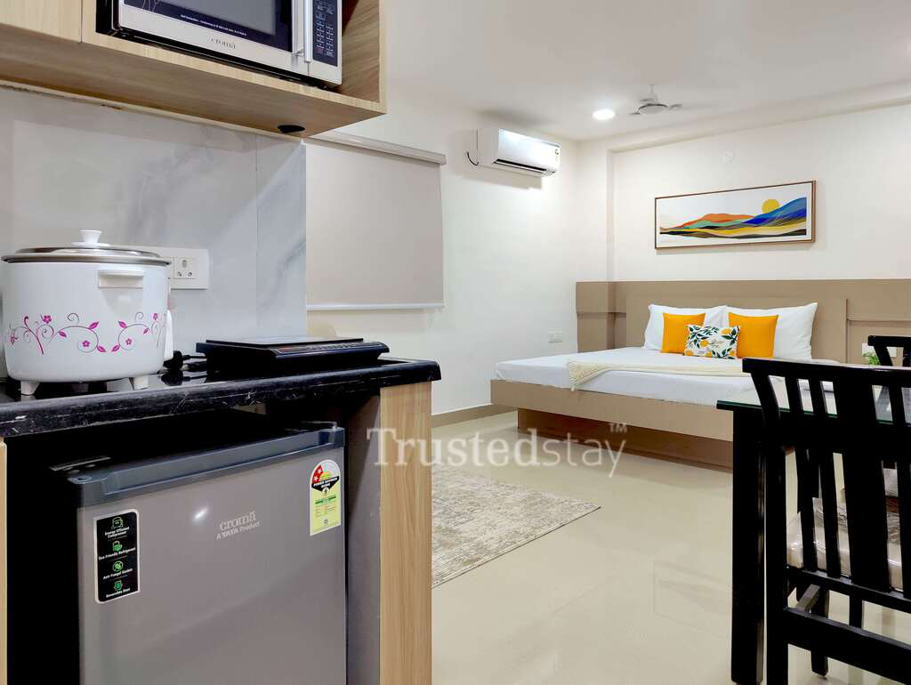 This standalone building features a total of 30 well-maintained rooms spread across the 1st to 5th floors, comprising ten 1BHK and twenty studio rooms. The ground floor houses the reception, parking area, staff room, and a common kitchen for guest use. All units come fully furnished with split air-conditioning, LCD TVs, attached bathrooms, and functional kitchens. Home-style meals are freshly prepared by an in-house cook, offering guests a convenient dining option. Well-suited for corporate travelers, individuals, and families, whether for short or long stays, TrustedStay KONBL1 offers modern amenities, dedicated service, and a comfortable stay in the heart of Hyderabad.