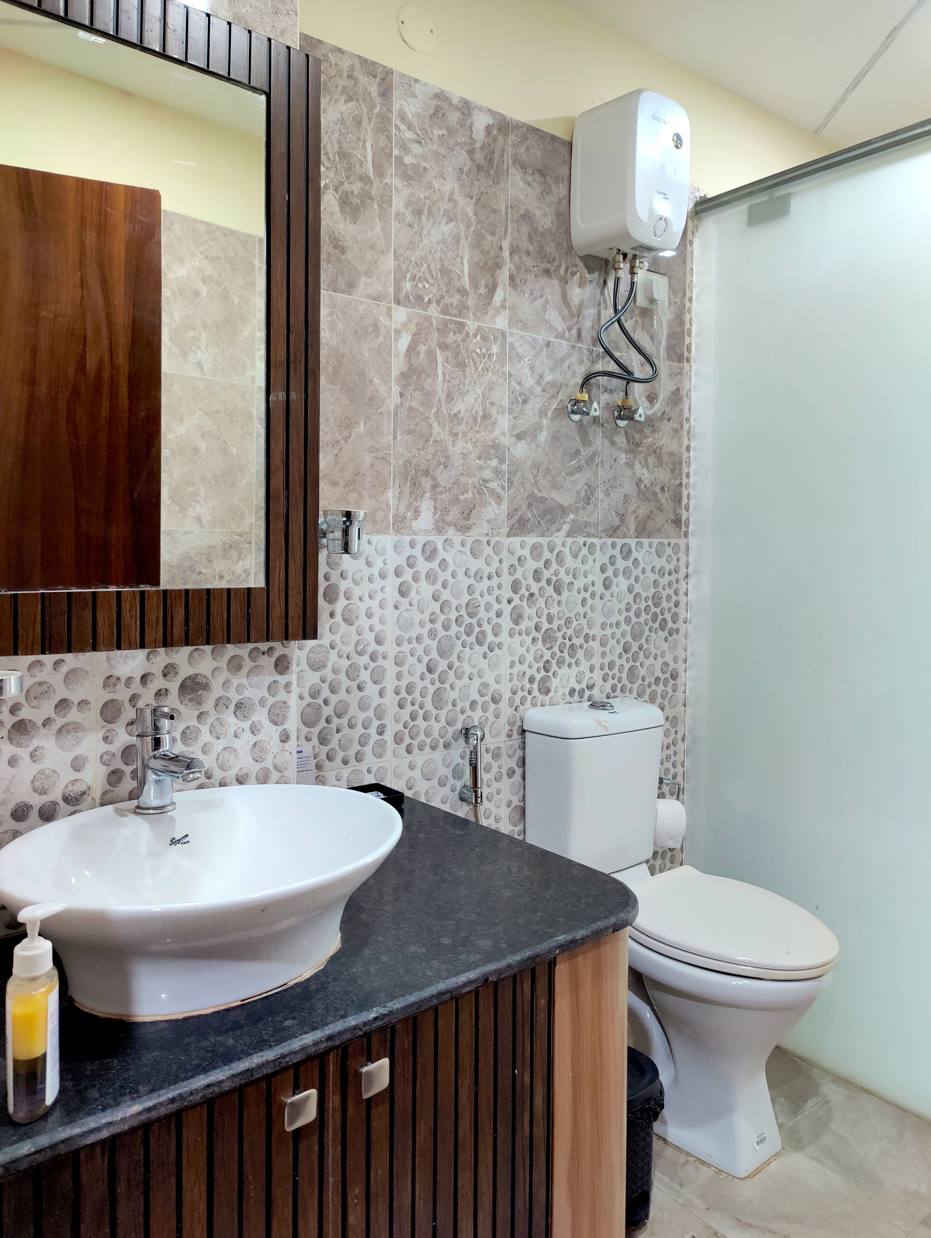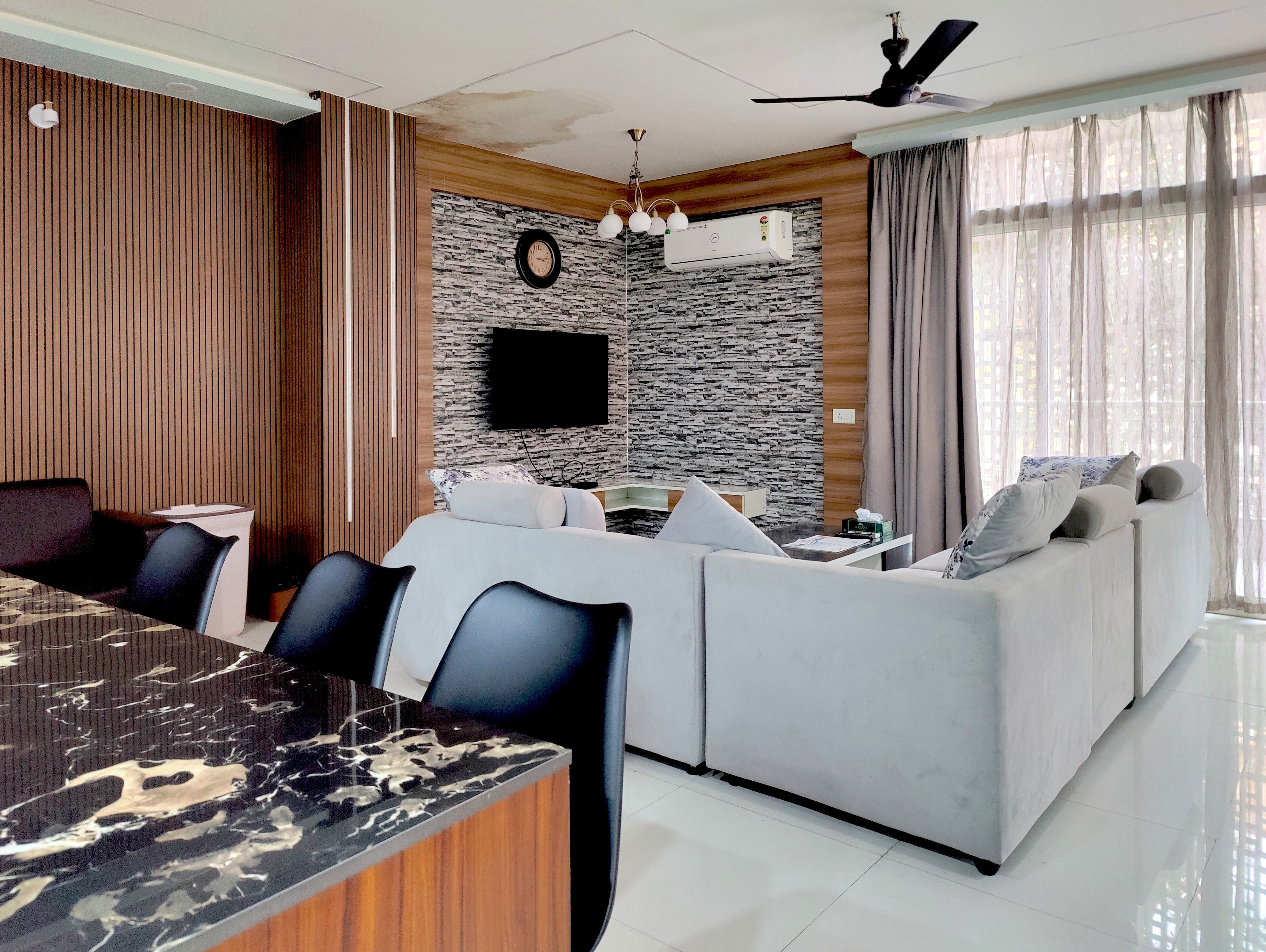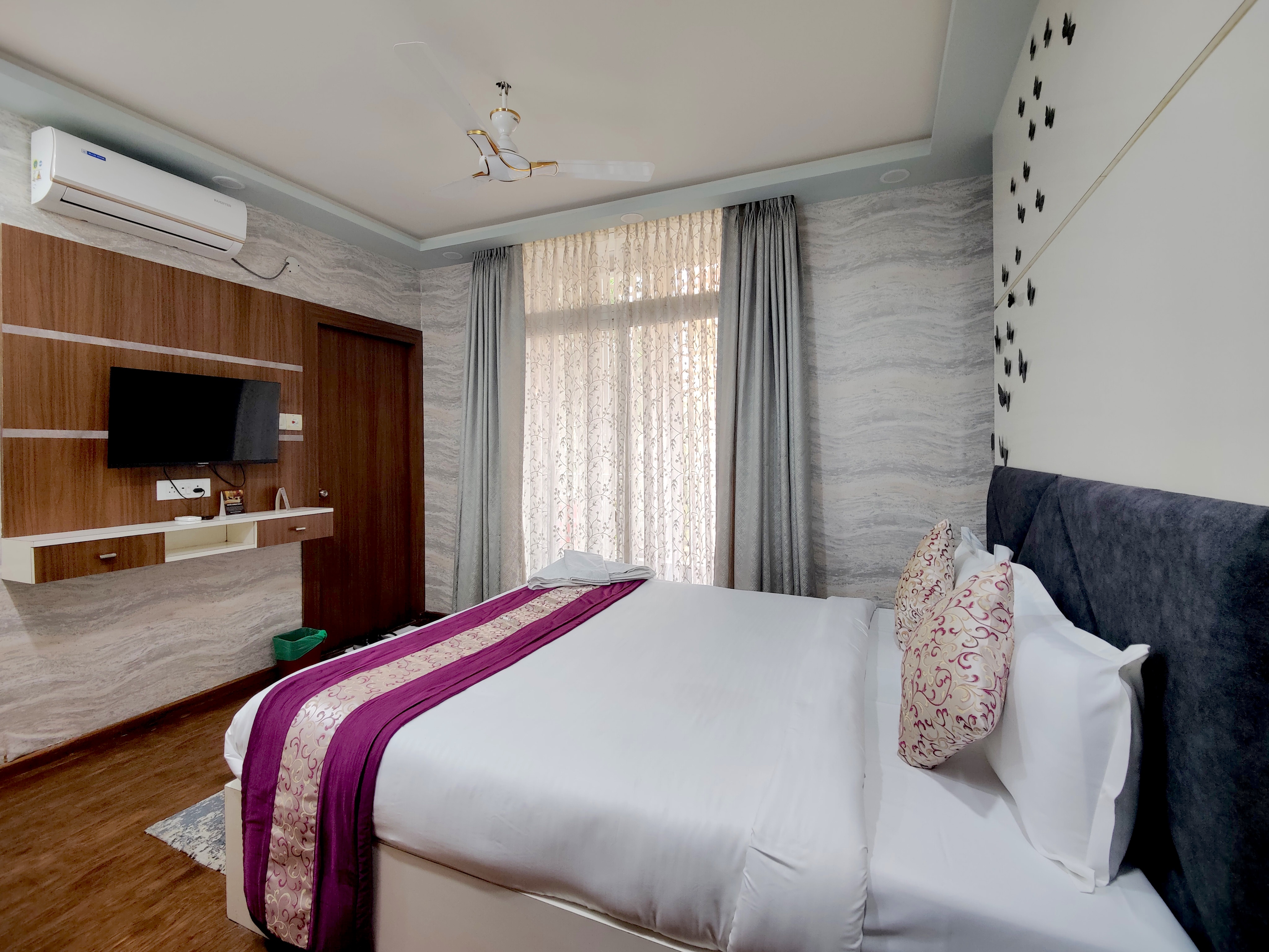 The property features two duplex-style units, each with four rooms, located on the first and third floors. The duplex layout includes a living area, kitchen, and one bedroom on the lower level, with internal stairs leading to three bedrooms above, offering privacy and ample space. All rooms are equipped with Split AC, LCD TV, attached bathroom and parking access. With an in-house cook, breakfast service, and flexible dining options, TrustedStay NEWMI1 blends the comfort of a home stay with the functionality of a guest house and service apartment, making it well-suited for business and leisure stays.